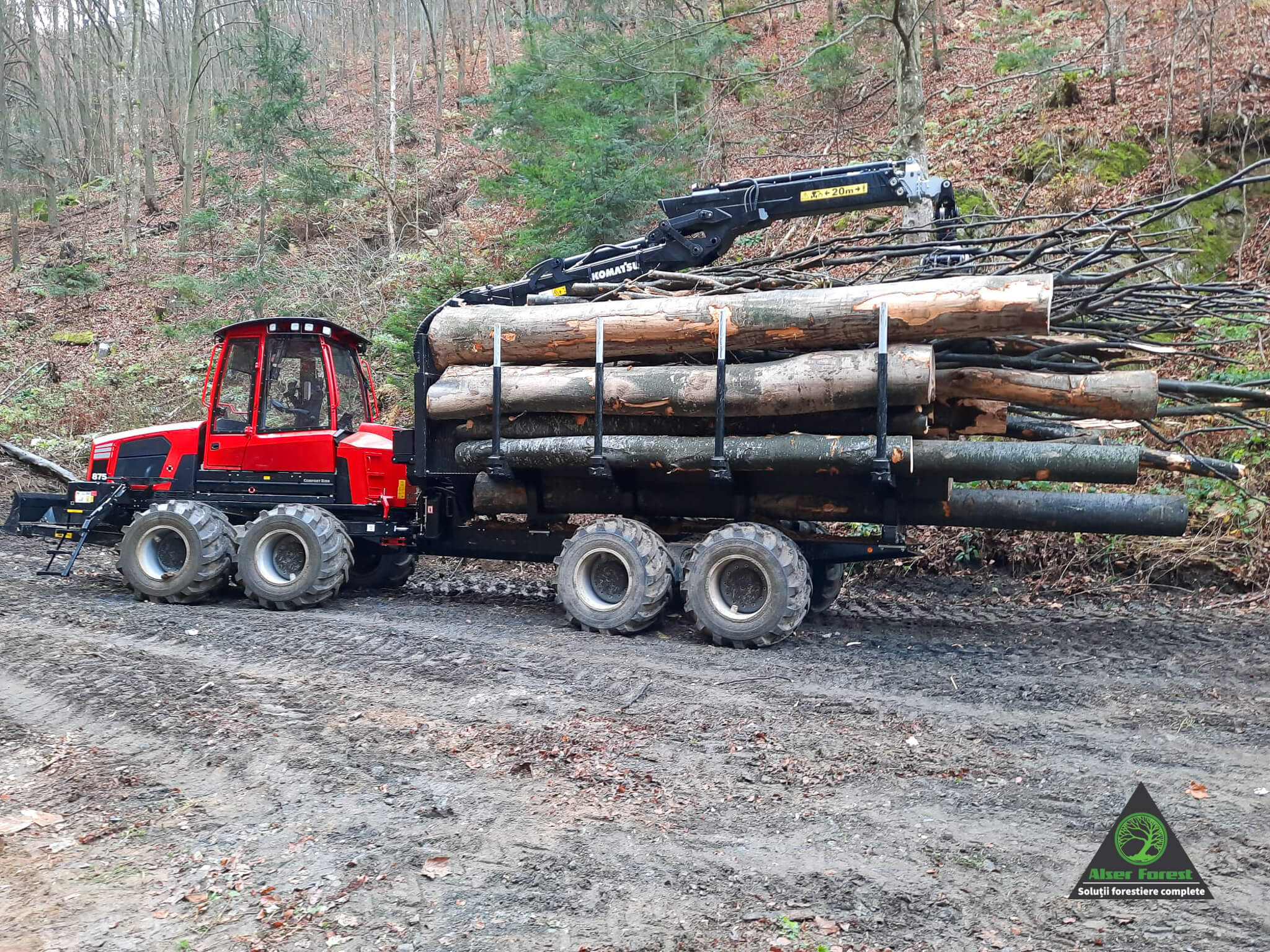 Săptămâna aceasta am livrat clientului de top din județul Gorj un forwarder nou, Komatsu 875, modelul ideal pentru pădurile de fag de principale, utilaj de 16 tone sarcină, cu macara puternică ce ridică 4 tone la 3 m.